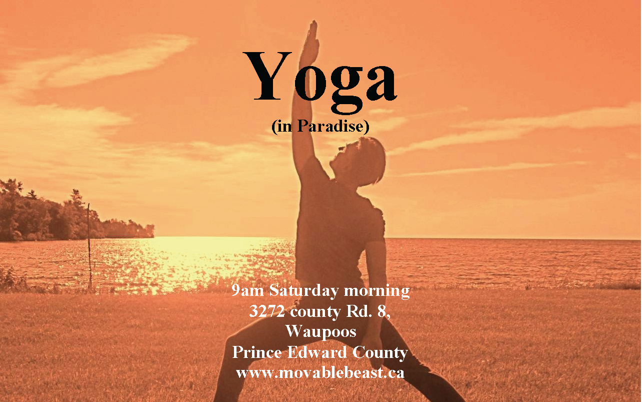 One of my clients has generously offered her property for summer yoga, for those of you who wish to participate. The cost is ten dollars or pay-what-you-can, and we meet at 9am on Saturday mornings (except for August 15), on a point of land that is surrounded on three sides (270 degrees) by water. The setting is idyllic, it is peacful, the sun is on the water for your salutes to the sun, and I have been privileged to facilitate some of the most speechless experiences this side of paradise. Please join us for yoga, and some tea following our practice. We are at 3272 County Rd #8 in Waupoos in beautiful Prince Edward County.