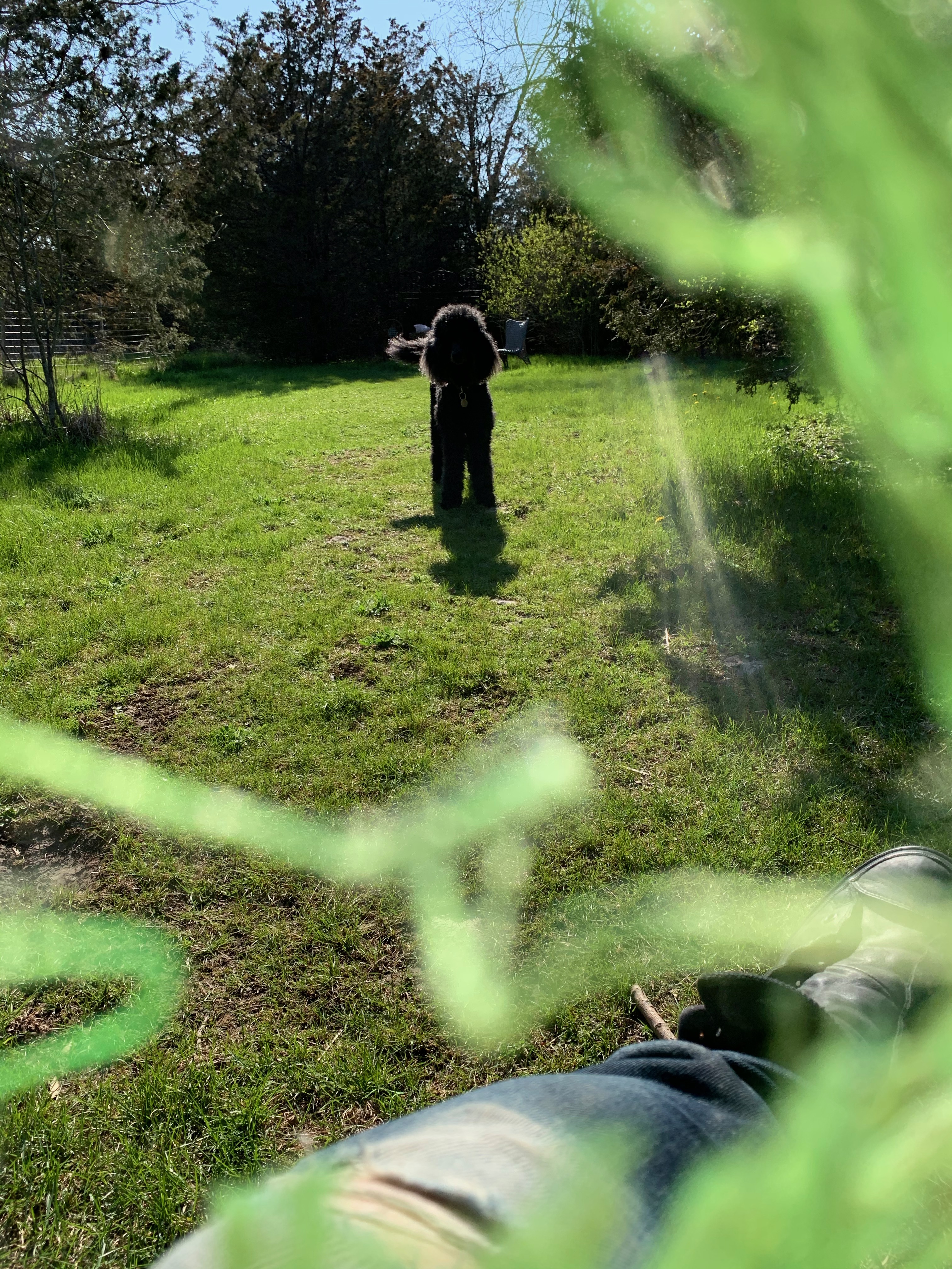I know you’ve likely seen a picture of me and the poodle if you’ve read this far. Well, true confessions, I often go into the “poodle yard” and plunk my ass on a chair and throw the frisbee (before or after a walk). Recently it dawned on me I could actually get down on hands and knees and crawl around and he goes bananas, has the best time of his life and we are totally engaged. Since when did I decide crawling had become such a chore? So yes, if your grandchildren aren’t yet off to university you might want to get down on the floor with them, or maybe sit in the warm surf on a sandy beach and feel what the world wants you to feel, sand in your crack, water splashing up into your nose, pebbles between your toes.
